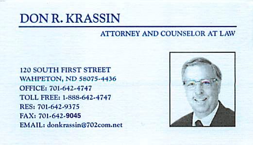 Don Krassin has been practicing for over 30 years. Krassin Law Office is a full service law office including handling of Wills, Estates, and Probate Law. Don Krassin has extensive experience in this and related matters. If you need a lawyer, please give us a call!